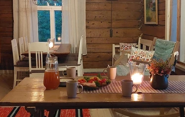 -keittoastioiden (kahvinkeitto tuvassa ja nuotiolla) ja muurikan ja grillausvälineiden käyttö (ruokailuastiaston muusta käytöstä sovittaan erikseen)