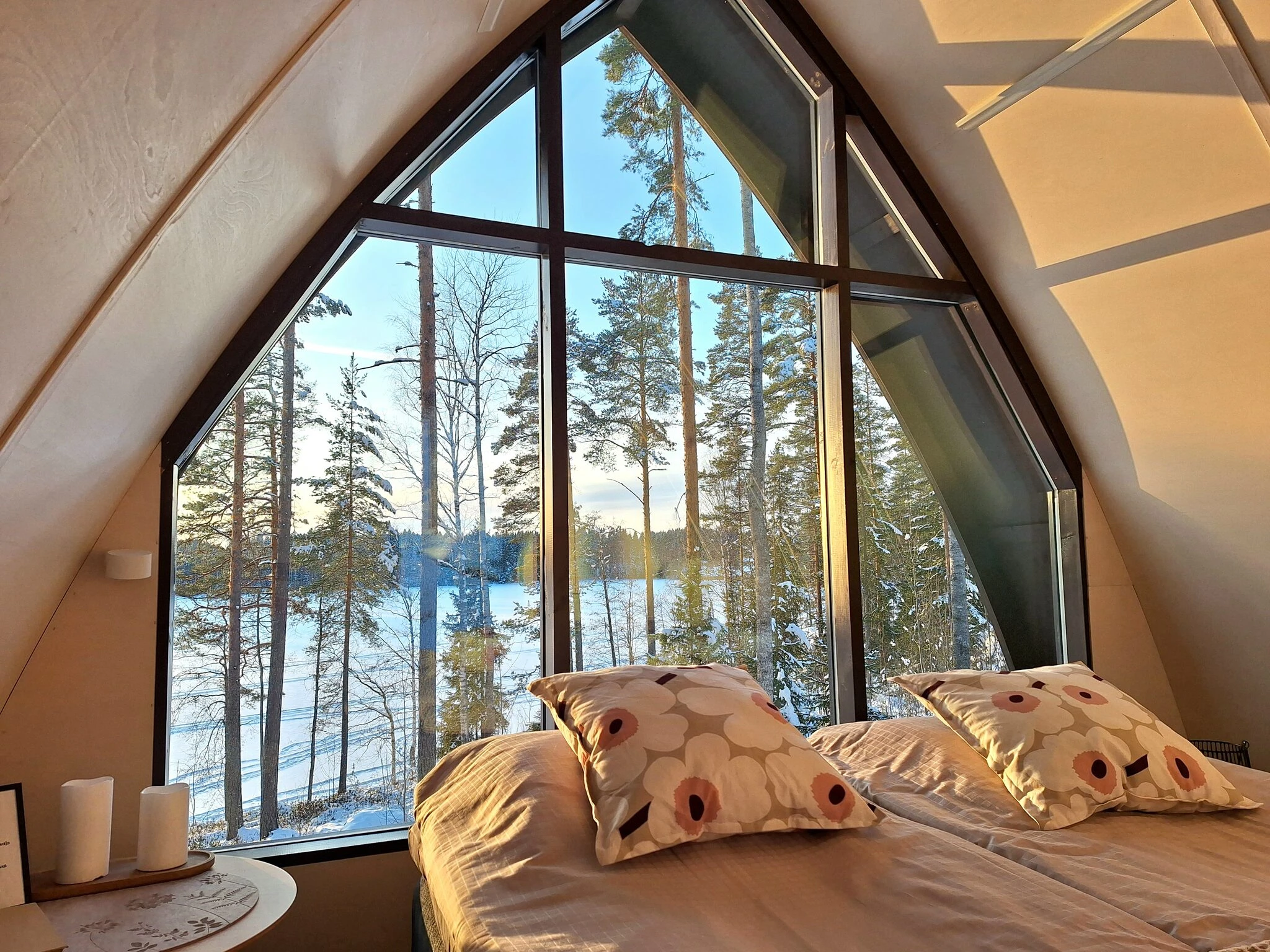 Lumous-metsämajoitteessa yövyt kuin linnunpoika pesässään. Oman peiton alta voit ihailla maisemaikkunasta edessäsi aukeavaa näkymää järvelle ja kevättalven hohtaville hangille. Valloita ympäröivä luonto tai vietä aikaa leväten. Illan tullen voit rentoutua saunan lempeissä löylyissä ja nauttia tulen loimusta nuotion äärellä. Väsymyksen hiipiessä on ihana käpertyä puhtaisiin lakanoihin ja nukahtaa tuhansien tähtien tuudittamana tähden lentoon.